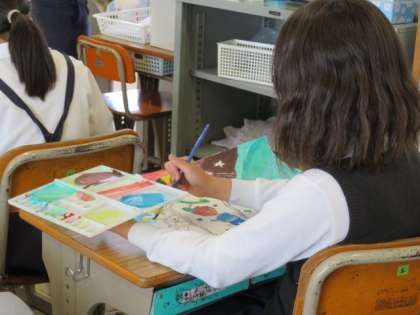 「自分の好きなお城」の制作を始めています。色づくりを工夫し、丁寧に塗り進めています。