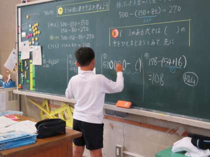 「計算のきまりを見つけよう」の学習です。「( )を使った式」の学習をしました。