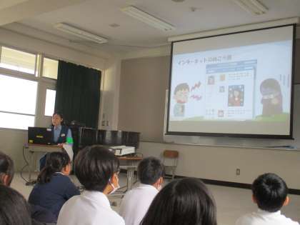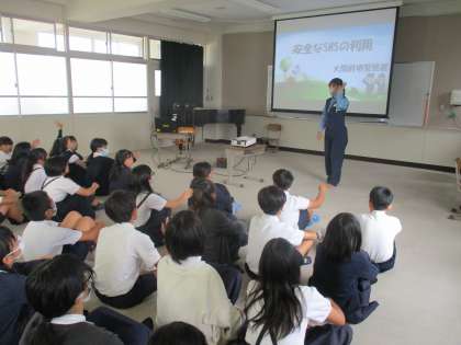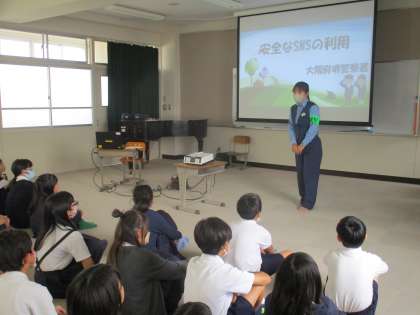警察の方が来てSNSの安全な利用について資料や動画を見ながら、みんなで考えました。