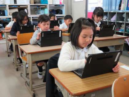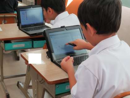 「たし算」の学習のまとめをしました。パソコンも使いながら、いろいろな問題に挑戦しています。