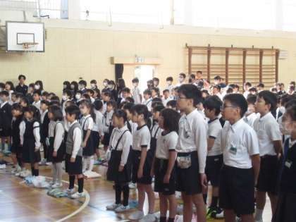 月曜朝礼がありました。「校長先生」「表彰」「連合運動会表彰」「児童会」「美化委員会」の話等がありました。