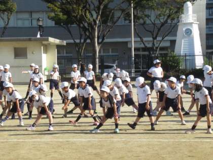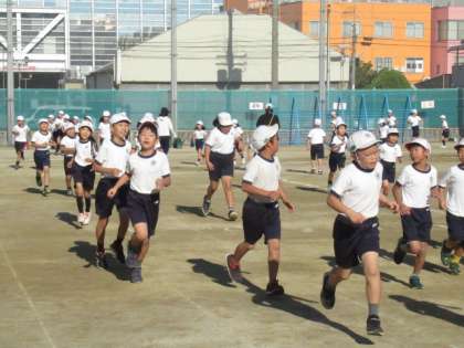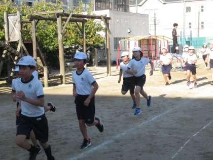 今日から「朝のかけ足」がスタートしました。今日は、1・3・5年生です。6分間走りました。