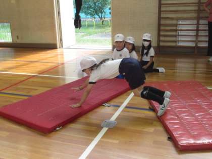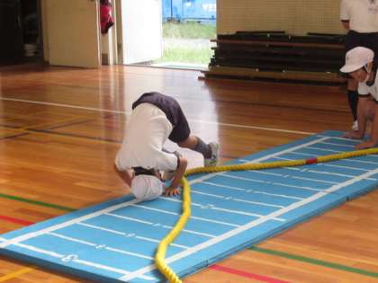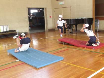 マット運動をしました。いろいろなコースをつくり、活動をしました。