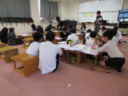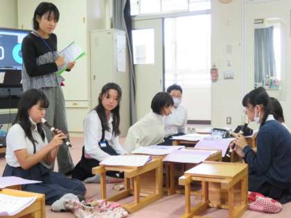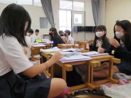 各グループにわかれて、和音をふくまれる音を使って、旋律をつくる学習をしました。