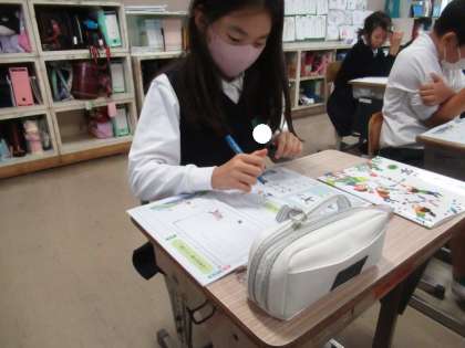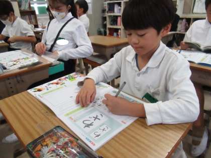 書写をしました。「わざ」を書きました。集中して取り組みました。