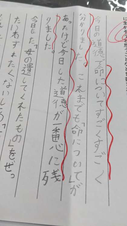 先生が実際に出会った東日本大震災で被災された方からのお話をもとに、継がれる命について考え合いました。