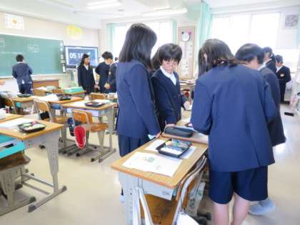 「世界に一つだけのお弁当」の学習です。それぞれのクラスで作った作品を鑑賞しました。
