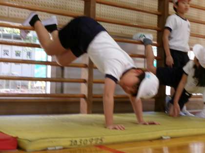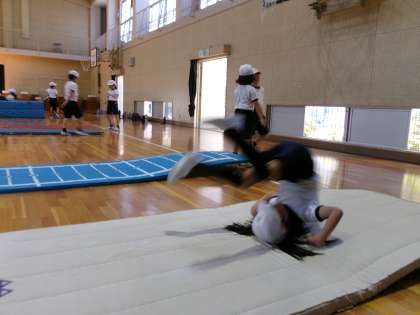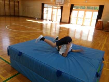 マットを使った運動遊びとして「ジャングル探検」をしました。それぞれの場で、生きものになりきって、動きを楽しみました。