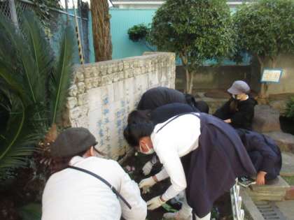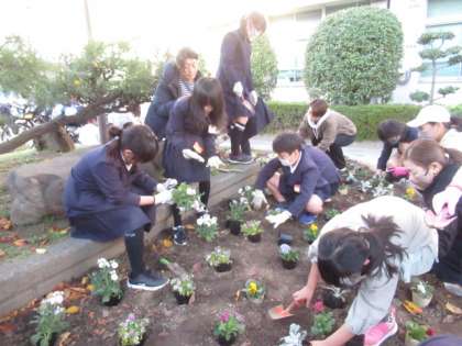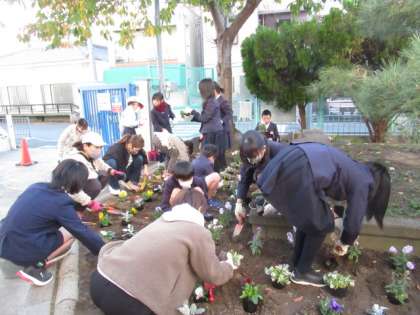 委員会活動の日に合わせて、PTA環境美化委員会の方々に花壇の花の植え替えをしていただきました。お忙しい中、どうもありがとうございました。