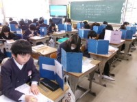 教科書にのっている自分が好きな絵を一つ選び、友だちと質問をし合いました。