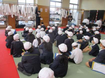 社会の学習で、堺警察署へ見学に行かせていただきました。パトカーに乗せてもらえるなど、子どもたちは大喜びでした。