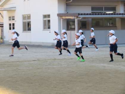 朝のかけ足がありました。今日は、2・4・6年生です。7分間走りました。