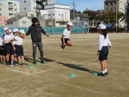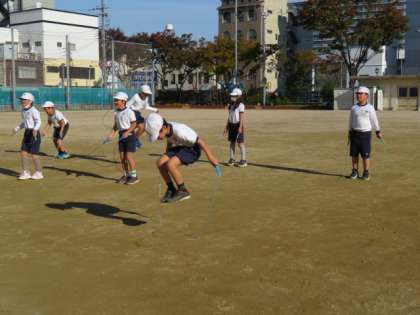 運動場で「なわとび」をしました。これからどんどん練習して、上手になりましょう。