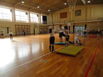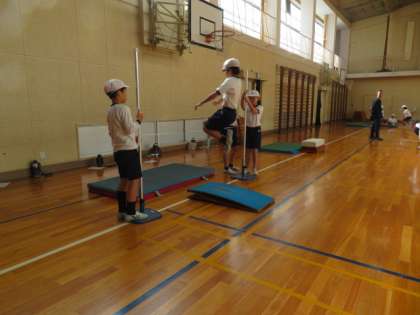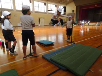「走り高跳び」の学習です。どうすれば高く跳べるのかを考えました。