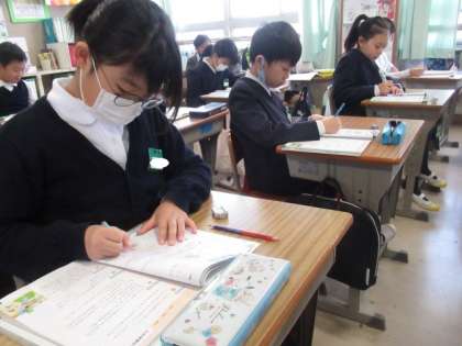 教科書の問題に挑戦をしました。答え合わせをしています。