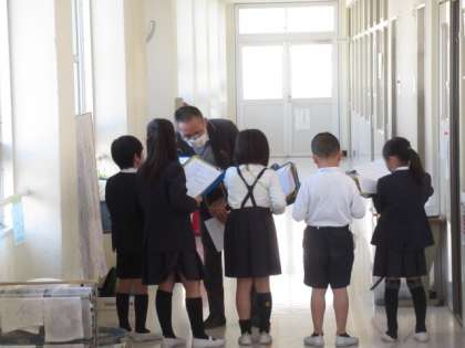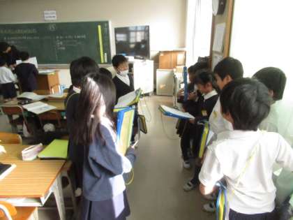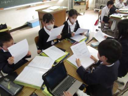 インタビューの練習をしました。自分がどこを読むのか話し合って決め練習をしました。