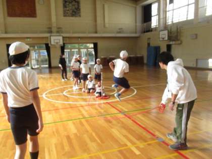 朝の会で「大なわ」をしました。みんな上手になってきました。
