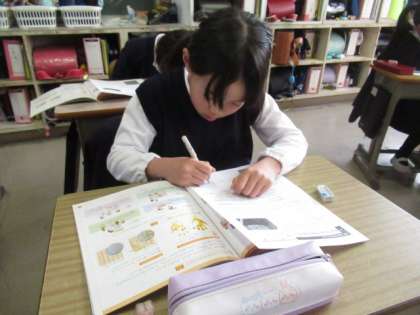「健康に良い生活環境」について学習しました。「どのようにすればいいのか」、教科書を見ながら確認しました。