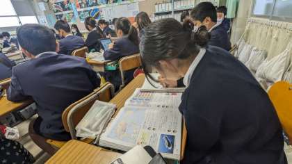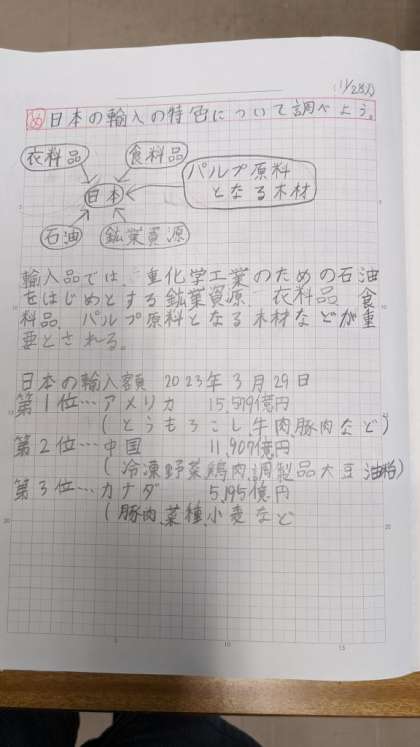 日本の貿易についての学びを深めています。今日は、「輸入」についてタブレットや教科書の資料から一人一人、まずわかることをまとめていました。