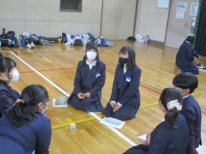 他校の児童と意見を交流するので、お互い知らない中で緊張しながらも、自分の意見をしっかりと話したり、他の意見を聞いたりしていました。