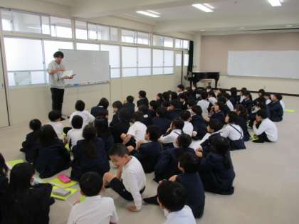 明後日の「町たんけん」に向けて、当日の流れの確認やインタビューの練習をしました。