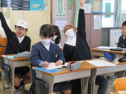 「ともなって変わる2つの数を見つけよう」の学習です。練習問題に取り組みました。