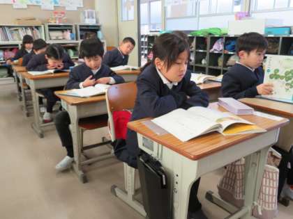 「どうぶつのあかちゃん」の学習に入りました。教科書を読み、お話全体の大まかな内容を読み取りました。