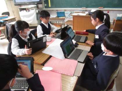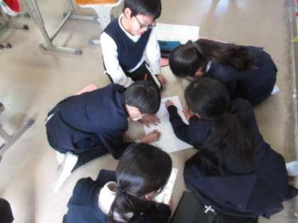 「堺のいいところを紹介しよう」に取り組みました。班に分かれて、「どんな発表にするのか」を考えました。