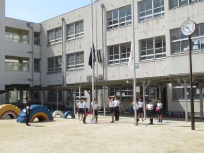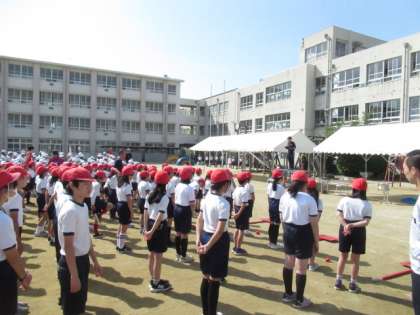 体育大会の全体練習がありました。「開会式」「ラジオ体操」の流れを練習しました。