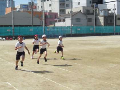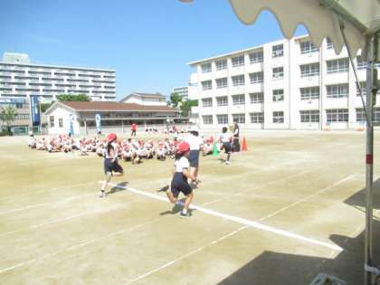 体育大会の練習をしました。徒競走の練習をしました。並び方を確認し、走りました。