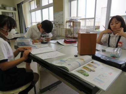 「メダカのたんじょう」の学習を進めています。「メダカのたまご」を顕微鏡で観察しました。