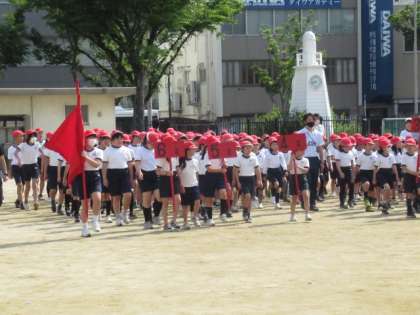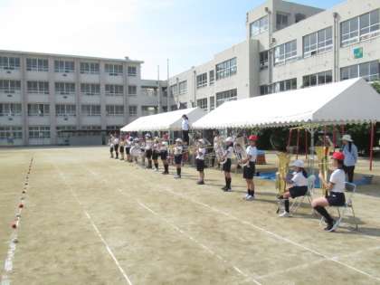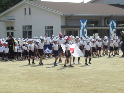 体育大会の全体練習がありました。「入場行進」「開会式」「閉会式」の練習をしました。