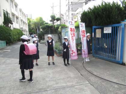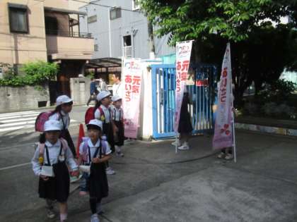 すいすいあいさつデーがありました。元気にあいさつをしました。