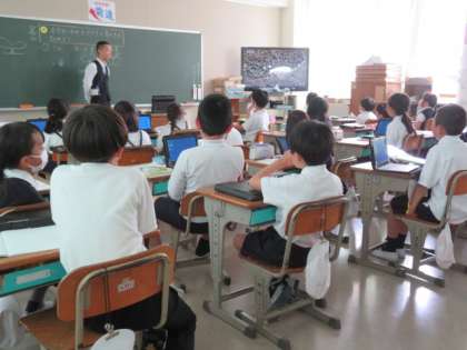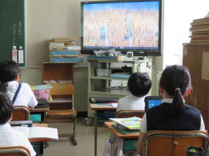 「植物の育ちとつくり」の学習をしました。映像を見ながら、学習のまとめをしています。