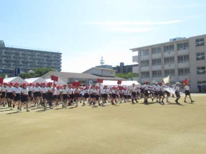 国旗・校旗掲揚、優勝旗返還、校歌がありました。