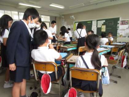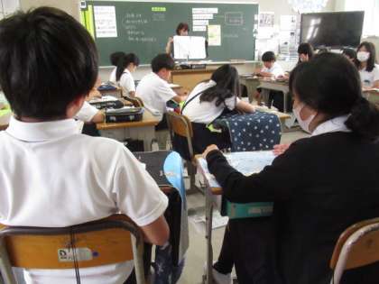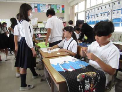 「エプロン」の制作を進めています。今までに学習したことを使って、楽しく取り組んでいます。