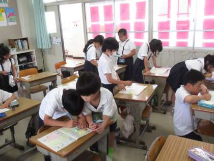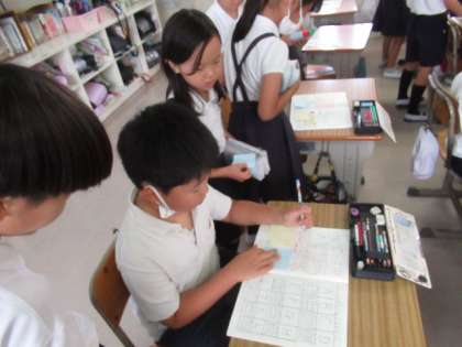 自主学の展覧会をしました。友だちの自主学を見て「いいところ」等ふせんに書きました。