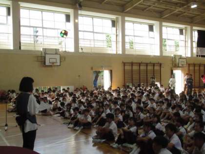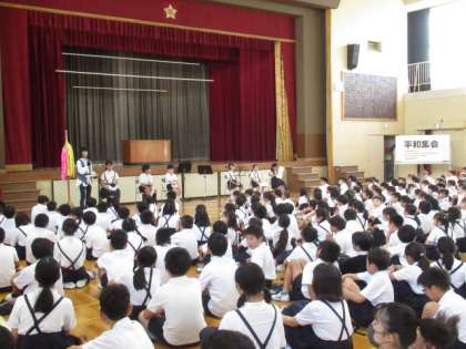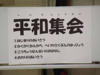 今日は「市小平和の日」で平和集会をしました。平和についての作文や校長先生の話を聞いて、平和について考えました。