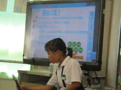 先週に引き続き、総合「福祉」についてまとめたことを後半組が発表しています。