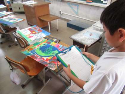鑑賞会をしました。みんなの作品を見て「よいところ」を探しました。