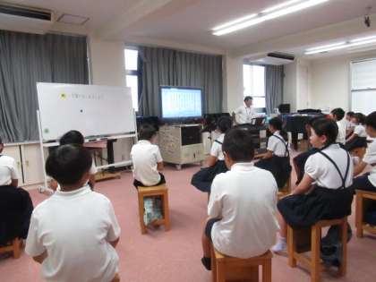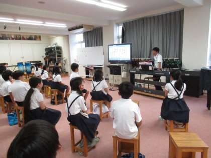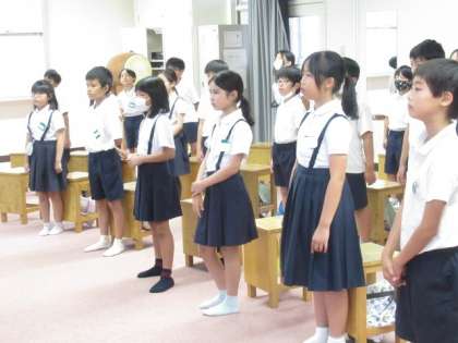1学期のふりかえりをしました。「まきばの朝」を歌いました。