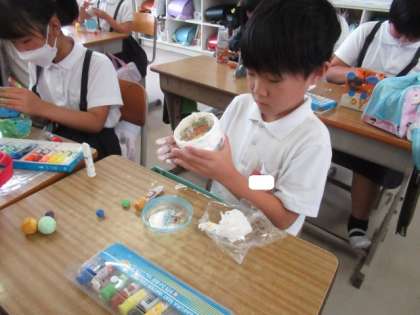カラフルねん土でマイグッズを作りました。自分たちで工夫して作っています。