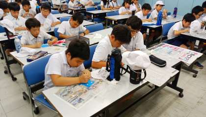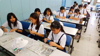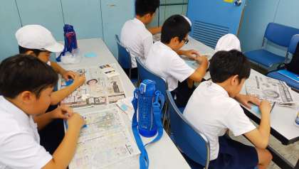 雨で海のプログラムができないため、昨日拾った貝殻を使って、シェルメモリーを作っています。