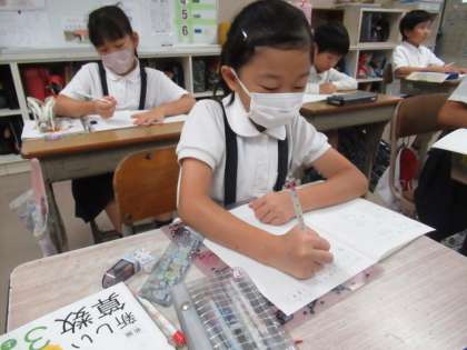 「かけられる数が3ケタのひっ算」の仕方を考えました。ノートに考えを書きました。