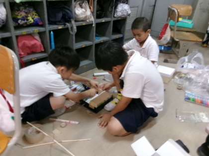 「おもちゃランド」の活動をしました。グループに分かれて、それぞれのおもちゃを作っています。