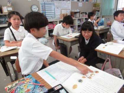 「すがたをかえる大豆」の学習をしました。筆者の説明の仕方の工夫を見つけ、ペアで話し合っています。