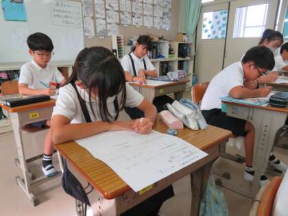 「分数」の学習を進めています。学習のまとめに練習問題に取り組みました。