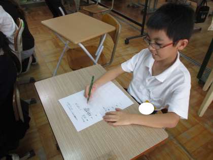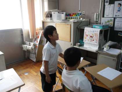 今日の朝の会では、以前開催した「ひま屋」(玉ねぎの販売)の反省をしました。次回の「ひま屋」の開催に向けて反省と改善点が多く出ました。