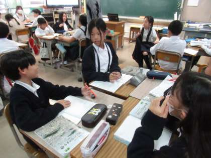 当時の人々は、洪水の被害を防ぐためにどうしたか考えました。グループに分かれ、考えました。