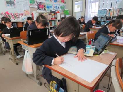 「たぬきの糸車」の学習を進めています。パソコンを使って、好きな場面についてまとめました。